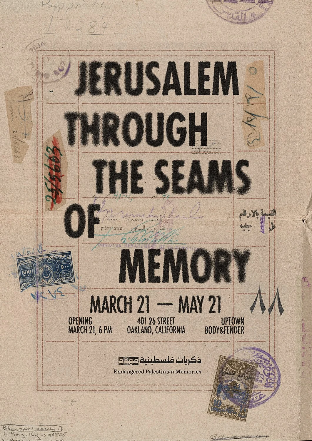 This exhibition was made possible with the generous support of Art Forces, I Witness Silwan, Uptown Body & Fender, UC Berkeley Geography, the Center for Middle Eastern Studies, volunteers, and private donors.